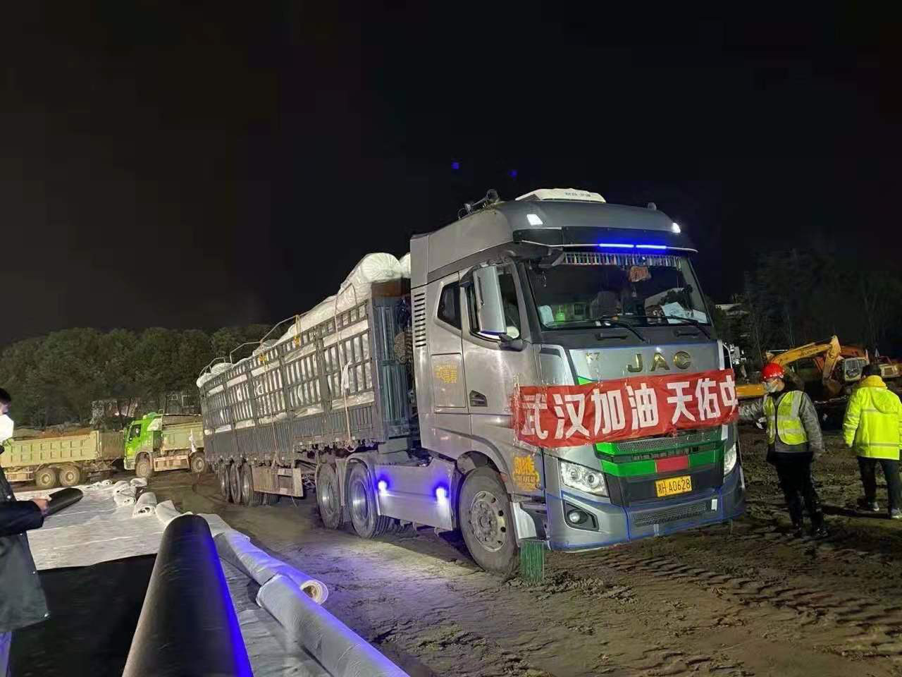 東方雨虹首批3萬多平米HDPE防滲膜也被火速裝車,運(yùn)送至武漢火神山醫(yī)院施工現(xiàn)場。