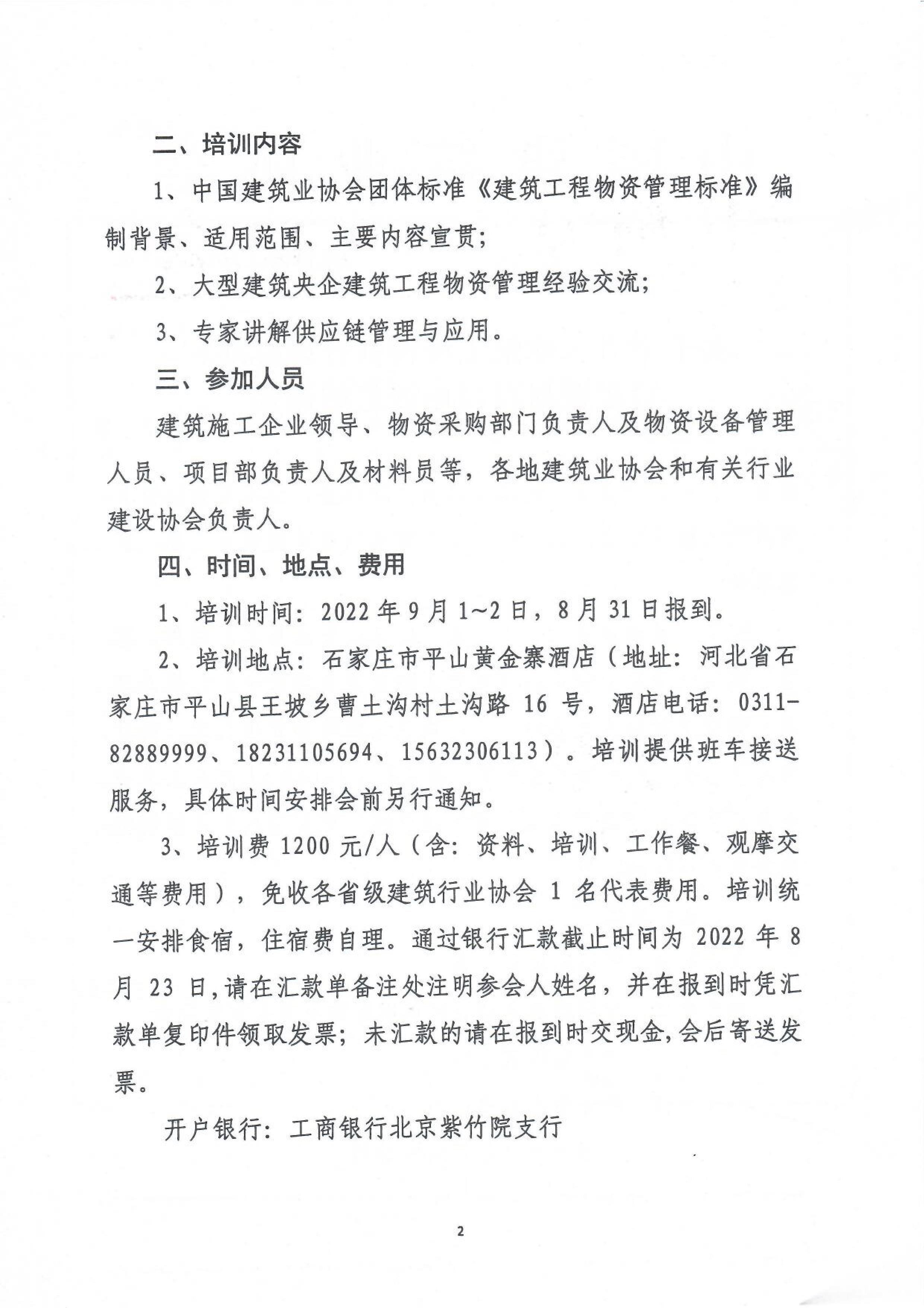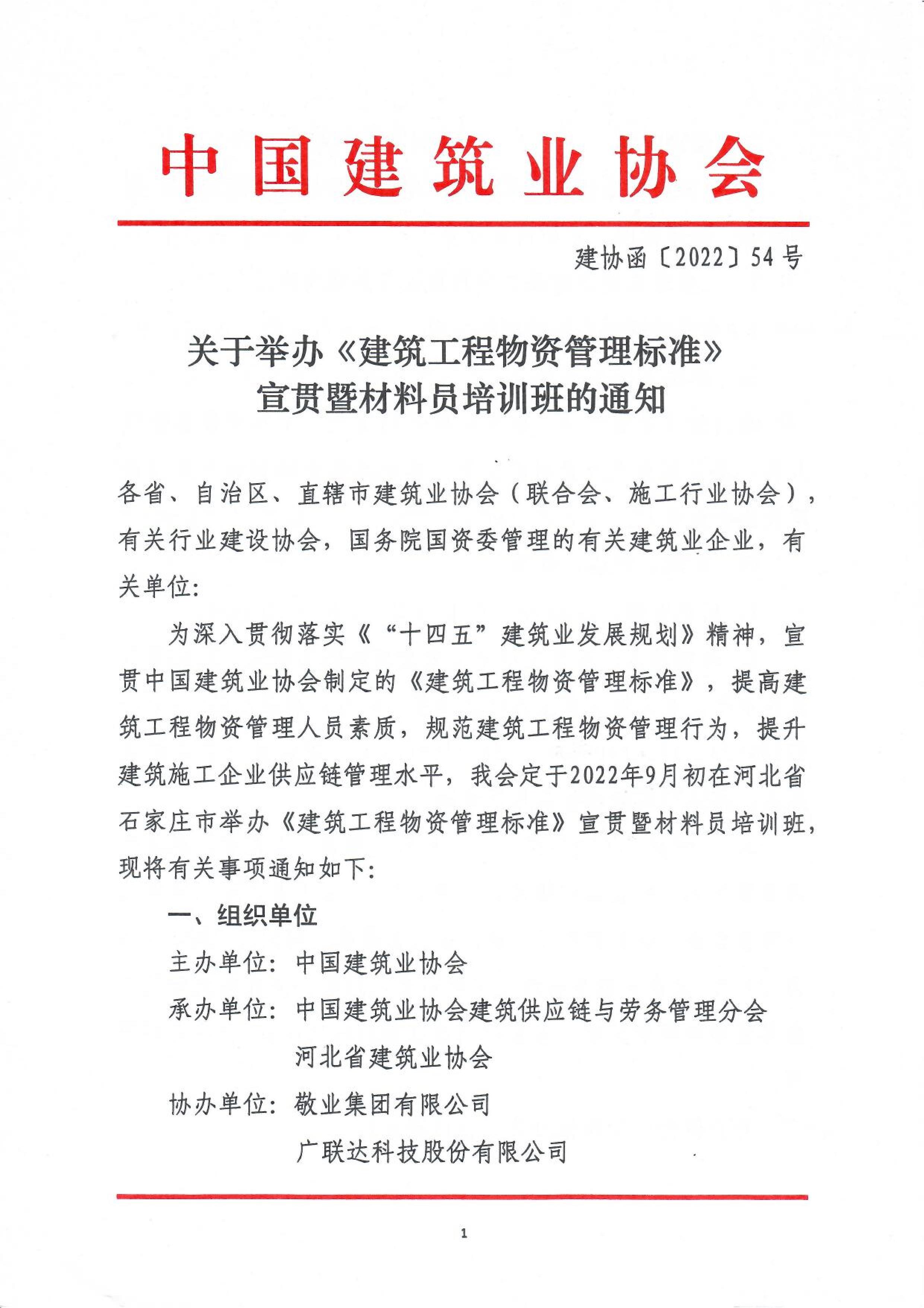 關于舉辦《建筑工程物資管理標準》宣貫暨材料員培訓班的通知