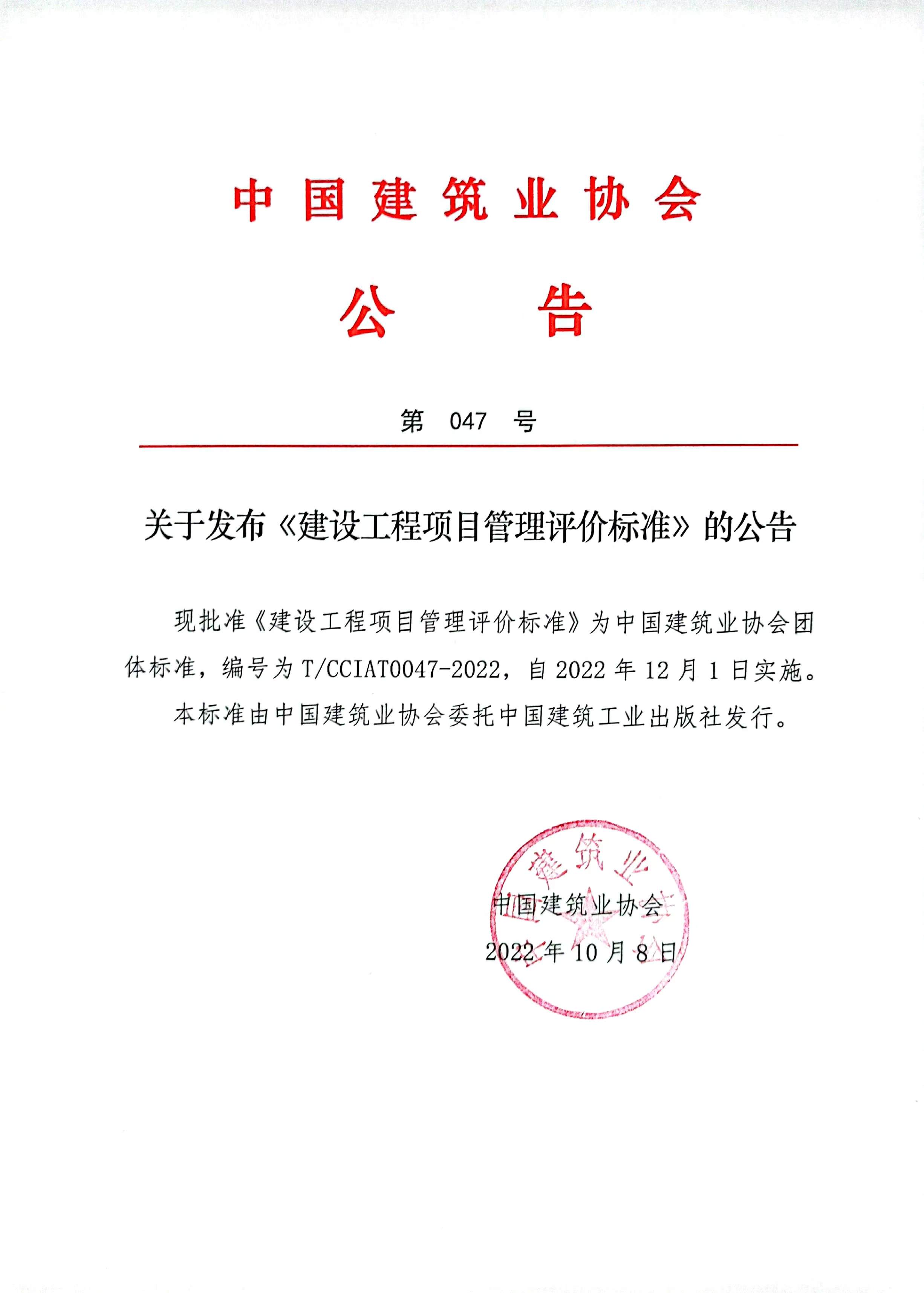 關于發(fā)布《建設工程項目管理評價標準》的公告