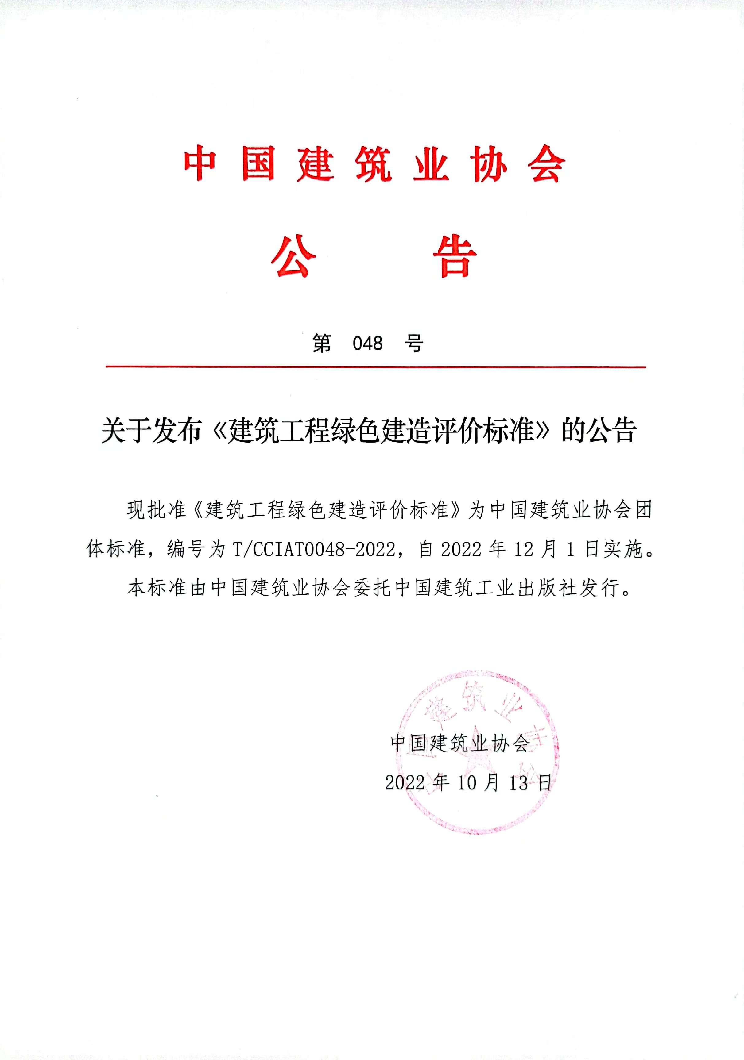 關(guān)于發(fā)布《建筑工程綠色建造評(píng)價(jià)標(biāo)準(zhǔn)》的公告