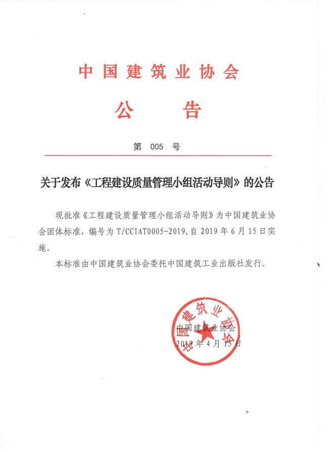 關(guān)于發(fā)布《工程建設(shè)質(zhì)量管理小組活動(dòng)導(dǎo)則》的公告