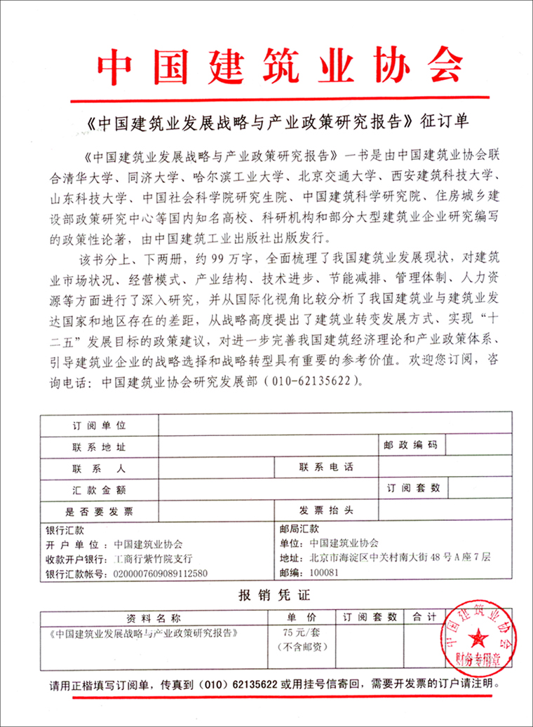 《中國建筑業發展戰略與產業政策研究報告》征訂單