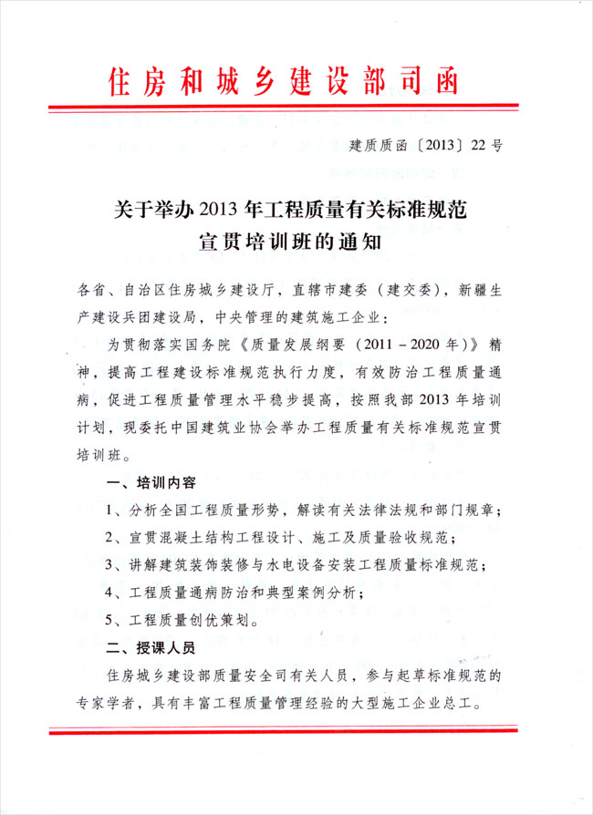 附件:關(guān)于舉辦2013年工程質(zhì)量有關(guān)標(biāo)準(zhǔn)規(guī)范宣貫培訓(xùn)班的通知