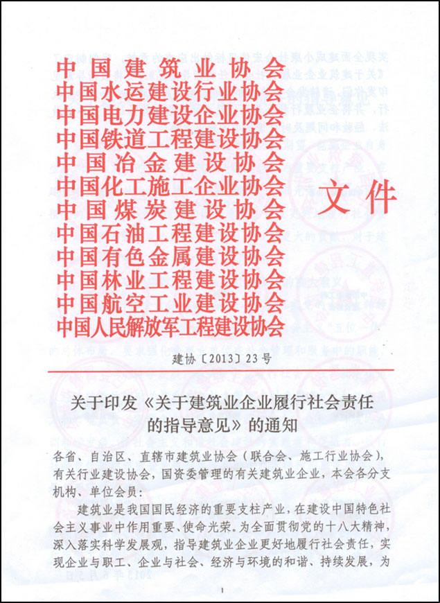 關(guān)于建筑業(yè)企業(yè)履行社會(huì)責(zé)任的指導(dǎo)意見(jiàn)