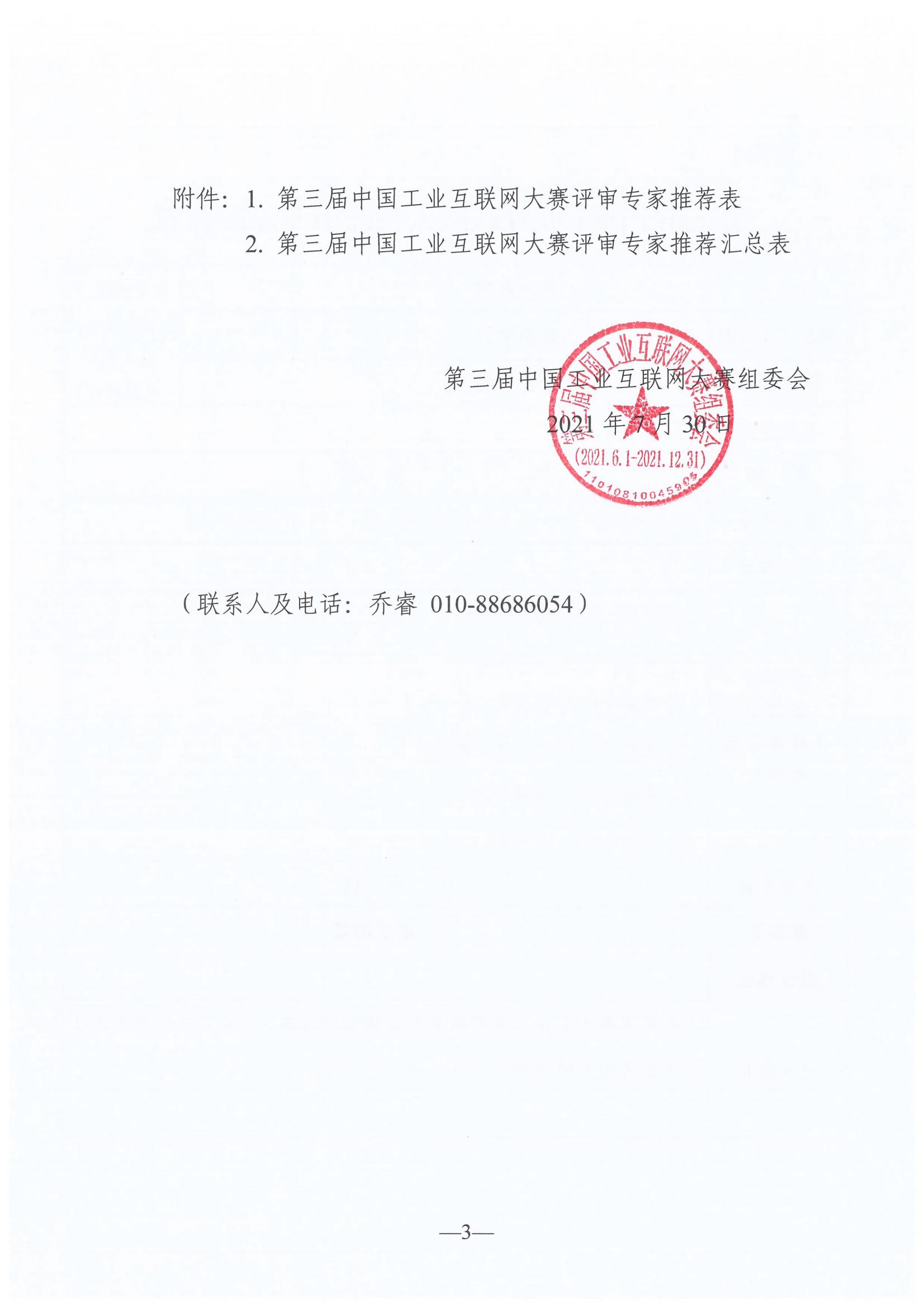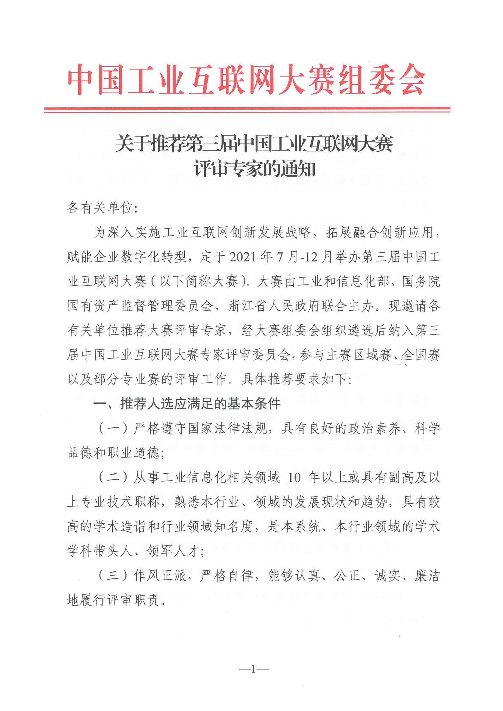 附件:1.第三屆中國工業(yè)互聯(lián)網(wǎng)大賽評審專家推薦表