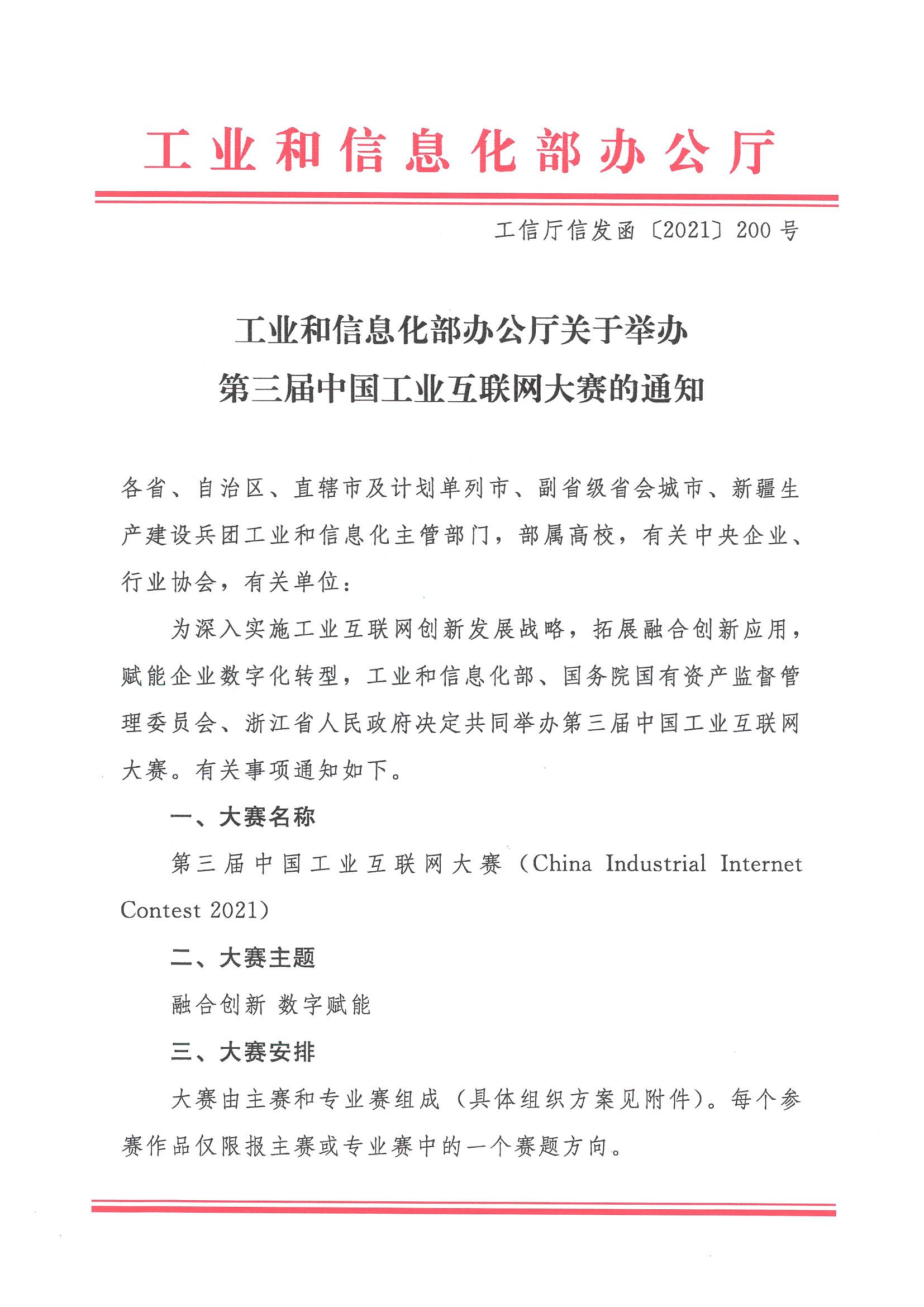 轉(zhuǎn)發(fā)《工業(yè)和信息化部辦公廳關(guān)于舉辦第三屆中國(guó)工業(yè)互聯(lián)網(wǎng)大賽的通知》