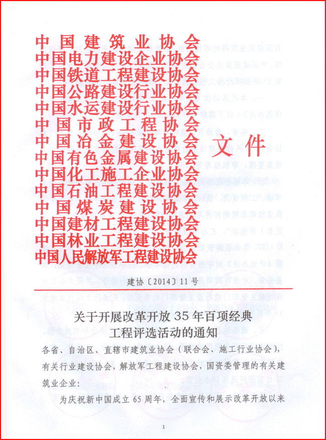 第一條 為慶祝新中國成立65周年,全面展示改革開放以來工程建設領域取得的輝煌成就,弘揚廣大建設者艱苦奮斗與勇于創新的精神,傳承中華民族優秀建筑文化,中國建筑業協會會同有關行業建設協會共同組織開展“改革開放35年百項經典工程”(暫定名)評選活動。為搞好該活動,制定本辦法。