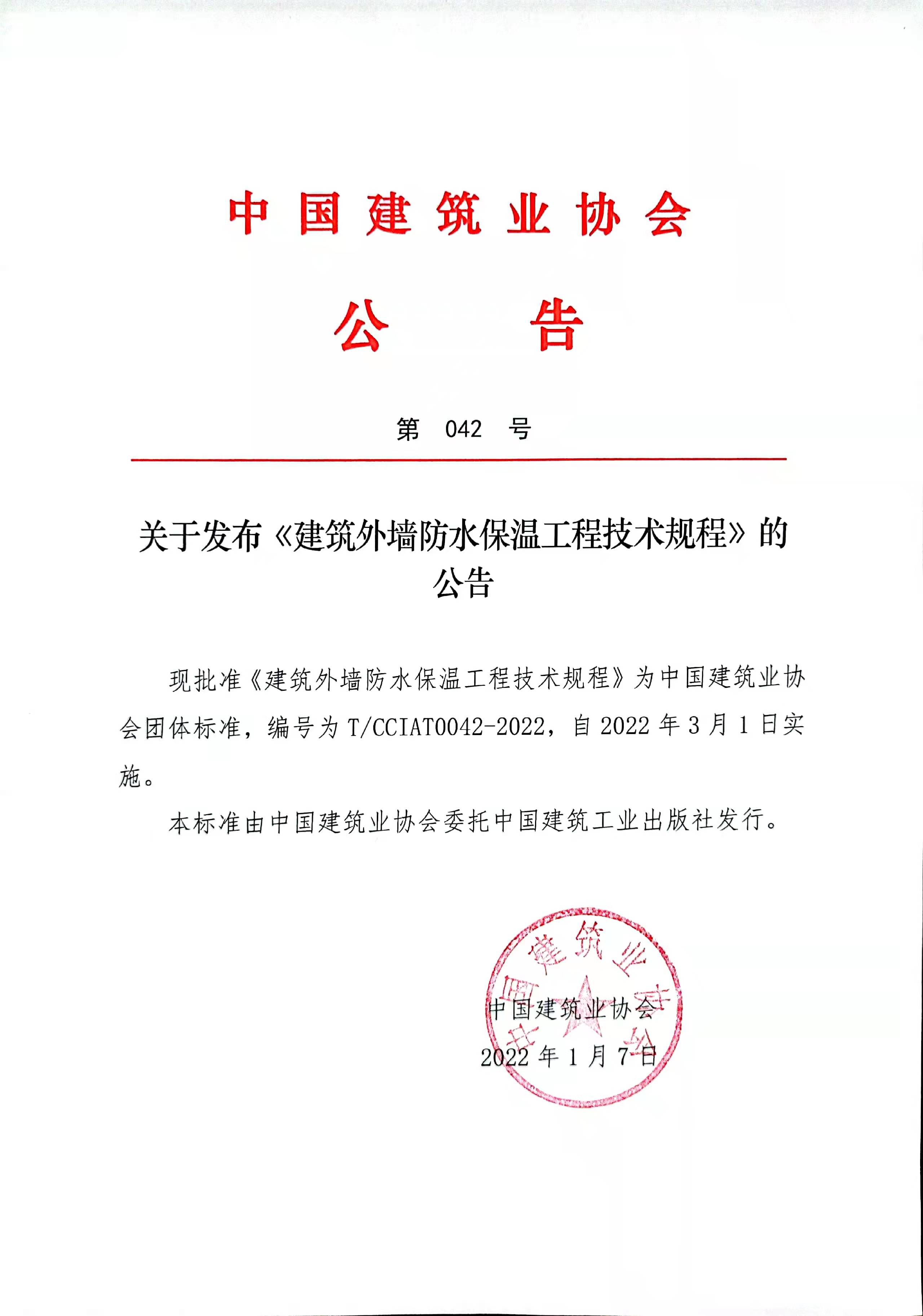 關于發(fā)布《建筑外墻防水保溫工程技術規(guī)程》的 公告