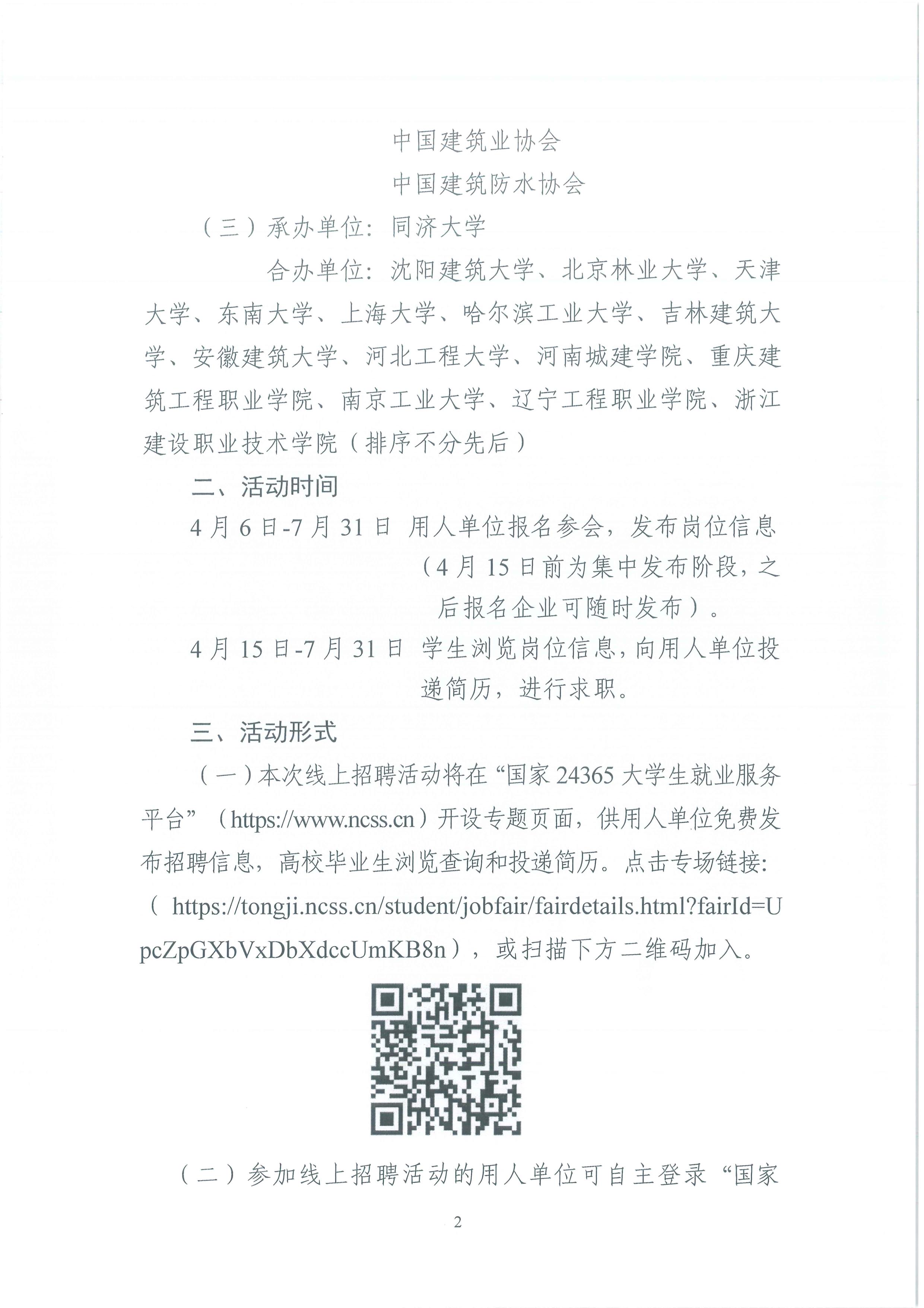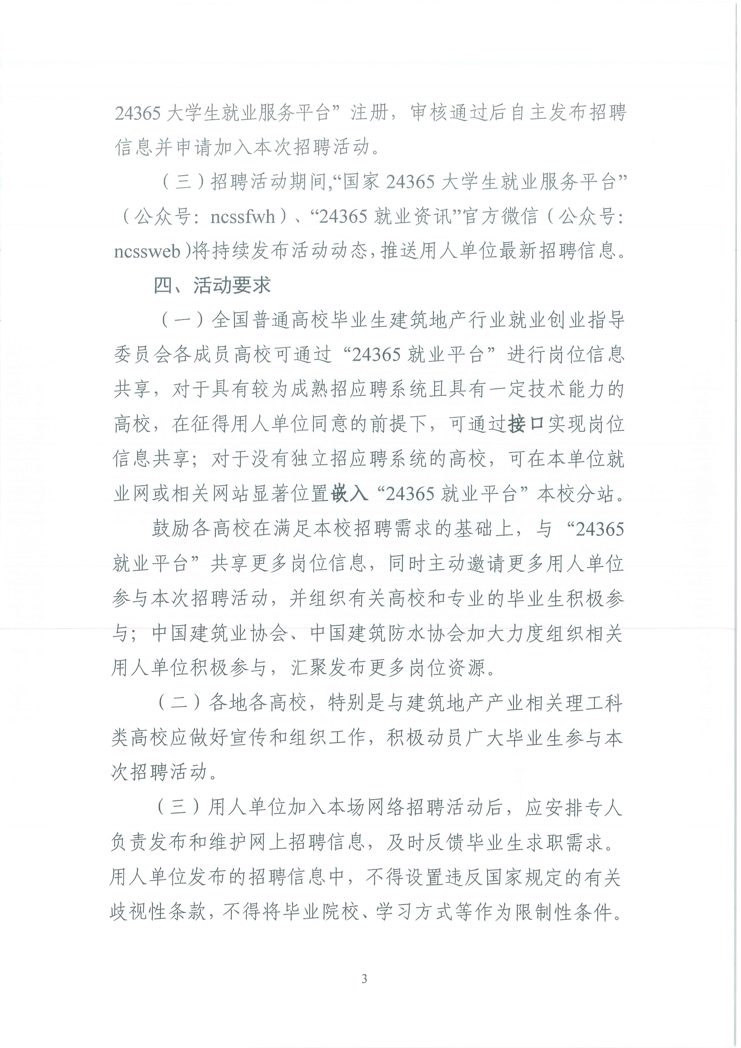 為深入貫徹落實(shí)黨中央、國(guó)務(wù)院“穩(wěn)就業(yè)”“保就業(yè)”決策部署,做好2022屆全國(guó)普通高等學(xué)校畢業(yè)生就業(yè)工作,現(xiàn)將《關(guān)于舉辦教育部“24365校園招聘服務(wù)”建筑地產(chǎn)行業(yè)專場(chǎng)招聘活動(dòng)的通知》轉(zhuǎn)發(fā)給你們,請(qǐng)有用人需求的會(huì)員企業(yè)自主登錄“國(guó)家24365大學(xué)生就業(yè)服務(wù)平臺(tái)”,按通知要求發(fā)布招聘信息、加入此次招聘活動(dòng)。