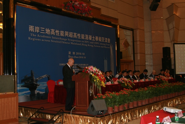 2010年10月28-29日,來自中國兩岸三地以及馬來西亞、新加坡等國的混凝土領域著名專家學者以及相關技術人員齊聚中國大陸,圍繞在建的深圳第一高樓——京基國際金融中心的建設進行學術交流研討,中國建筑業(yè)協(xié)會副會長兼秘書長吳濤應邀出席會議并致辭。