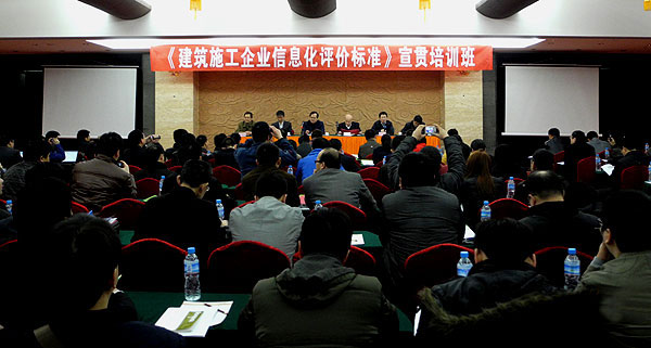 中國建筑業協會副會長兼秘書長吳濤同志出席了培訓班開班儀式并講話,他從實現“十二五”規劃,落實《2011-2015年建筑業信息化發展綱要》,加快轉變建筑業發展方式、實現可持續發展的角度介紹了出臺《標準》的重要意義。他指出,《標準》的頒布實施對于指導和推動我國建筑施工企業信息化建設、貫徹落實中央關于轉變經濟發展方式、促進企業轉型升級的要求具有重要作用。要認真、積極地做好《標準》的宣貫工作,為企業信息化評價工作創造條件、打好基礎,為進一步提升企業的信息化建設水平提供一個良好的平臺。