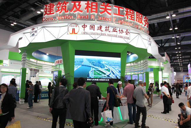 本屆建筑及相關工程服務板塊以黨的十八大精神為指導,把樹立尊重自然、順應自然、保護自然的生態文明理念放在突出地位。圍繞生態文明建設,集中展示我國建筑業在著力推進綠色發展、循環發展、低碳發展,為人民創造良好的居住和生產生活環境等方面做出的突出貢獻。中國建筑股份有限公司、中國中鐵股份有限公司、中國水利水電建設股份有限公司、中國交通建設股份有限公司、中國航空規劃建設發展有限公司、中國機械工業建設集團有限公司等大型央企以及北京城建、上海建工、天津城建、河北建設、陜西建工、湖南建工、云南建工、南通四建、中天建設等知名建筑業企業參展,為我國建筑業企業“走出去”搭建交流合作平臺。