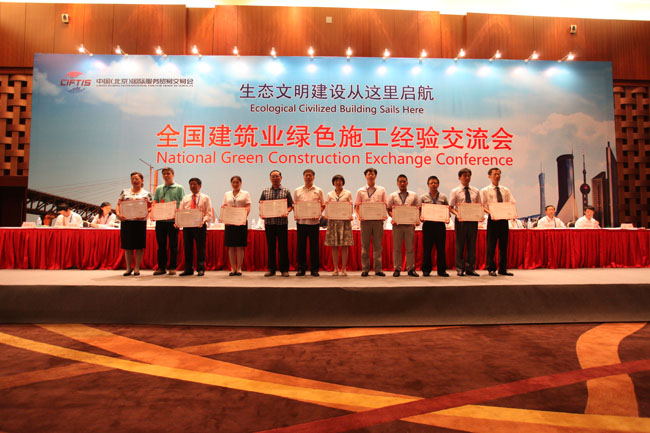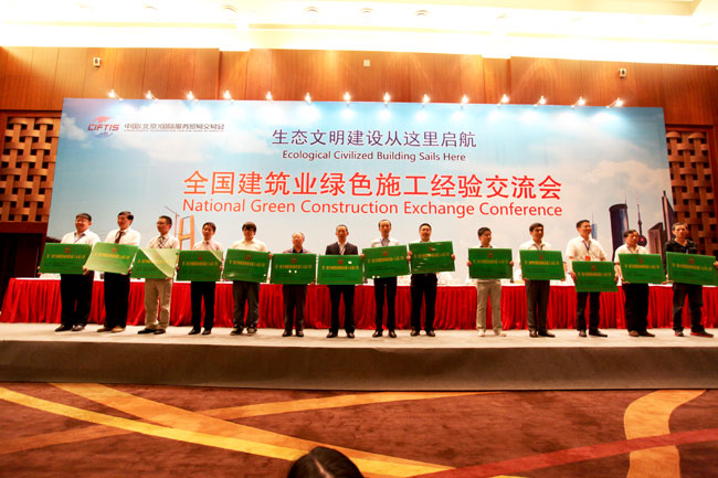 大會向首批和第二批全國建筑業綠色施工示范工程完成單位的代表頒發榮譽證書
