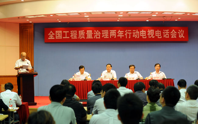 9月4日,住房城鄉建設部召開全國工程質量治理兩年行動電視電話會議,傳達、學習國務院領導同志關于抓好工程質量工作的重要批示,部署開展工程質量治理兩年行動工作。住房城鄉建設部黨組書記、部長陳政高出席會議并講話,部黨組成員、副部長齊驥主持會議,部黨組成員、副部長王寧就質量治理行動中要著力抓好的六項工作進行了部署,部黨組成員、中央紀委駐部紀檢組組長石生龍出席會議。住房城鄉建設部建筑市場監管司負責人通報了2013年以來房屋市政工程質量安全事故及轉包違法行為典型案例查處情況,宣讀了對30家工程質量安全管理優秀企業通報表揚的通知。中國建筑業協會副會長兼秘書長吳濤代表協會宣讀了《保障工程質量禁止轉包違法分包行為倡議書》。北京、山東、福建、天津、安徽5個省市住房城鄉建設部門負責人進行了交流發言。陳政高部長指出,今天部署的工程質量治理兩年行動,是經過近四個月的籌備后,經部常務會議討論決定的,并報請國務院領導同志同意。國務院領導同志對抓好工程質量作出批示。我們今天這個會議,實際上是傳達、學習、落實國務院領導同志重要批示的會議。