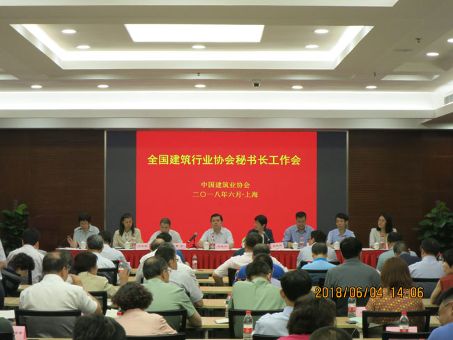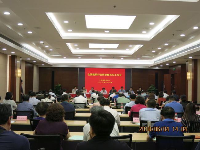 2018年6月4日,中國建筑業協會在上海召開全國建筑行業協會秘書長工作會。中國建筑業協會會長王鐵宏、副會長吳慧娟出席會議并講話,各地區建筑業協會和有關行業建設協會會長及秘書長約80人出席。副秘書長李蓬主持會議并宣讀了《關于加強協會分支機構管理的說明》。副秘書長景萬宣讀了《關于完善魯班獎評選工作的說明》。