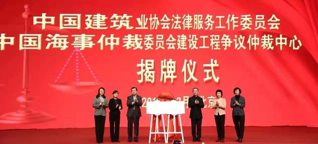 12月10日上午,中國建筑業(yè)協(xié)會法律服務工作委員會和中國海事仲裁委員會建設(shè)工程爭議仲裁中心揭牌儀式在北京舉行。中國建筑業(yè)協(xié)會會長王鐵宏、副會長吳慧娟、副秘書長王秀蘭,中國海事仲裁委員會秘書長顧超、副秘書長兼仲裁院副院長陳波、副秘書長解常晴共同為新機構(gòu)揭牌。