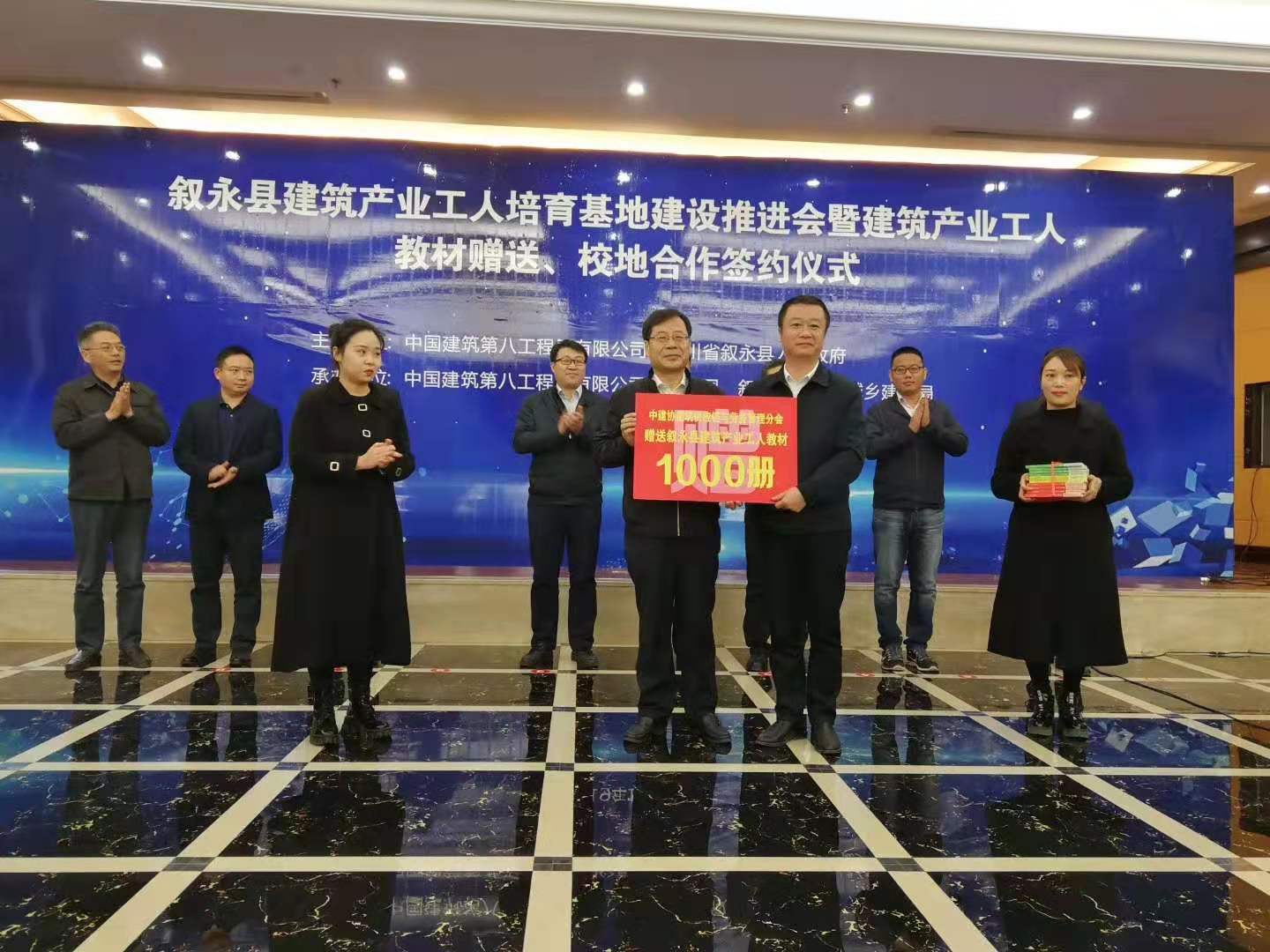 會上,中國建筑業協會建筑供應鏈與勞務管理分會副會長兼秘書長邢作國代表協會向敘永縣贈送砌筑工、鋼筋工、測量工3套建筑工人培訓教材共1000冊,用于敘永縣建筑工人培訓,助力敘永縣建筑工人培育基地建設的順利推進。邢作國表示,培育建筑產業工人隊伍是一項長期而又艱巨的任務,需要行業上下社會各界的共同努力,中國建筑業協會愿意同大家一道為培育新時期建筑產業工人隊伍、為行業的改革發展盡協會的一份綿薄之力。