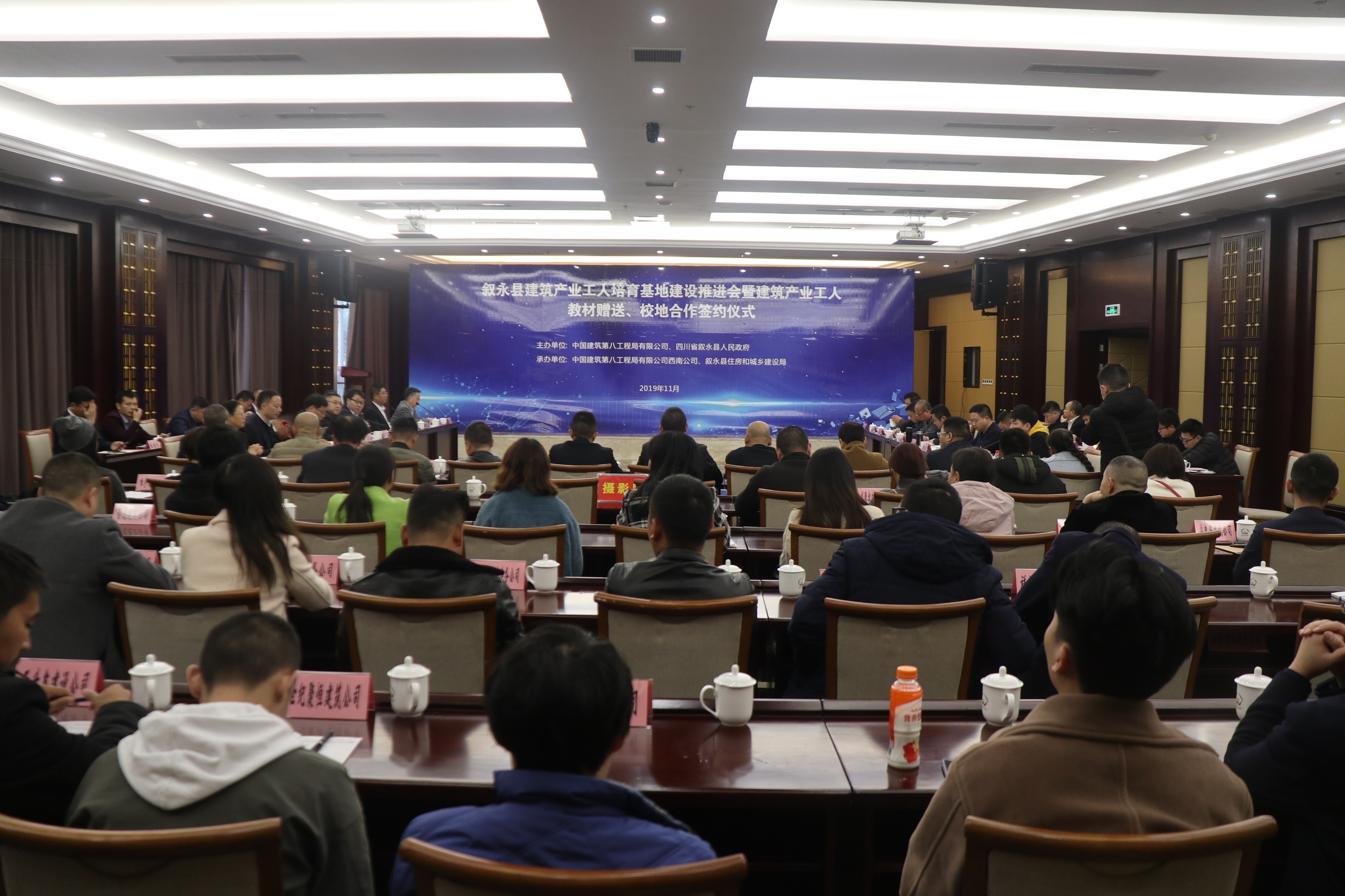 11月15日,由中國建筑第八工程局與敘永縣人民政府共同舉辦的敘永縣建筑產業工人培育基地建設推進會暨建筑工人技能邀請賽順利召開。住房和城鄉建設部建筑市場監管司施工監管處副處長李雪飛、四川省住房和城鄉建設廳副廳長程剛、敘永縣委副書記 縣長唐杰、中國建筑第八工程局工程部總經理周德軍等有關領導參加會議。